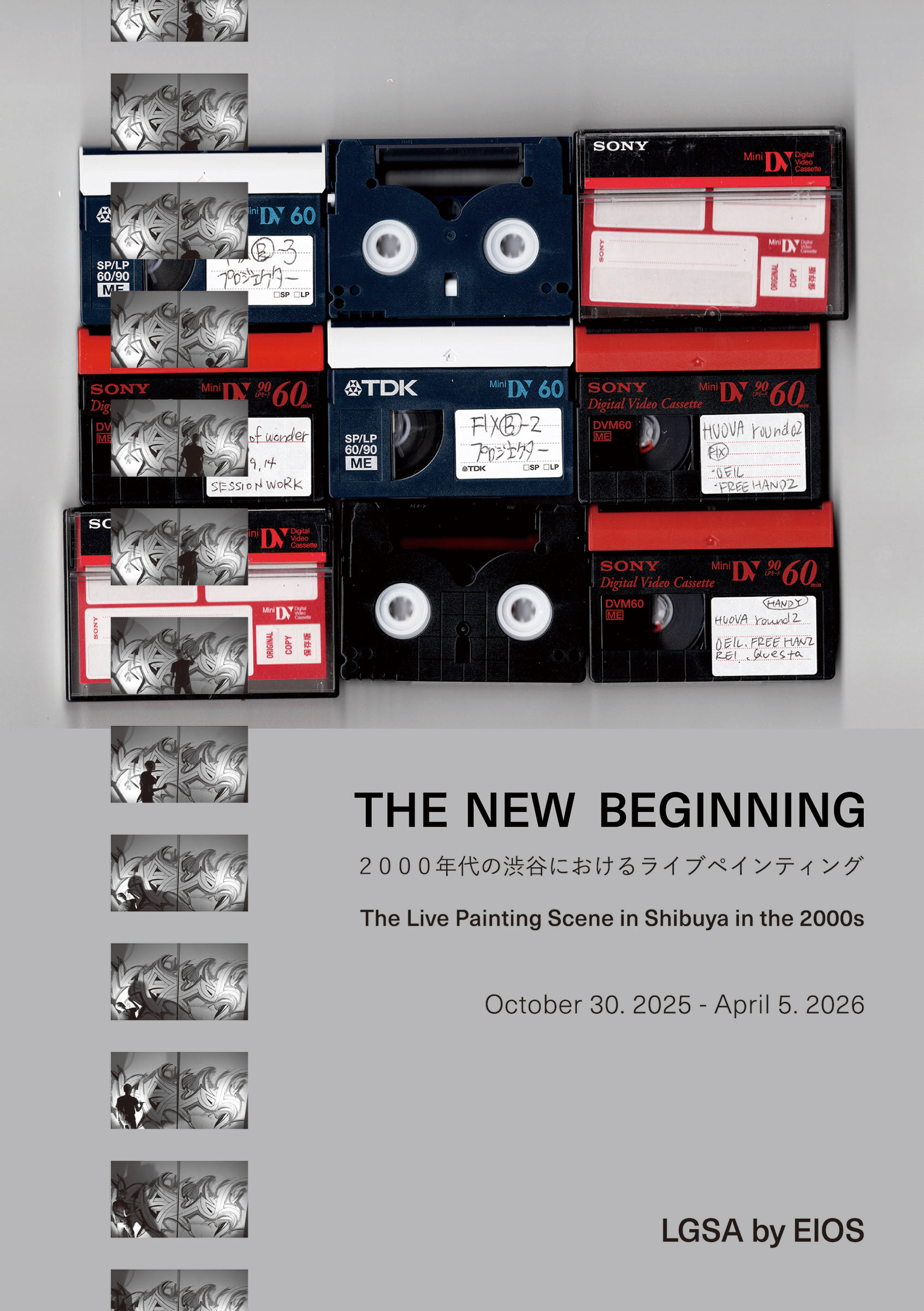 本展で紹介する映像は、2000年代の渋谷のクラブシーンやそこで行なわれたライブペインティングのほんのわずかな断片でしかない。同時に、その熱気や雰囲気をたしかに伝える時代の証言でもある。それが過去を懐かしむ「由来」にすぎないのか、未来の文脈をつむぐ「新しい始まり」の糧になるのかは、これからのLGSA by EIOSの活動をとおして見定めたい。